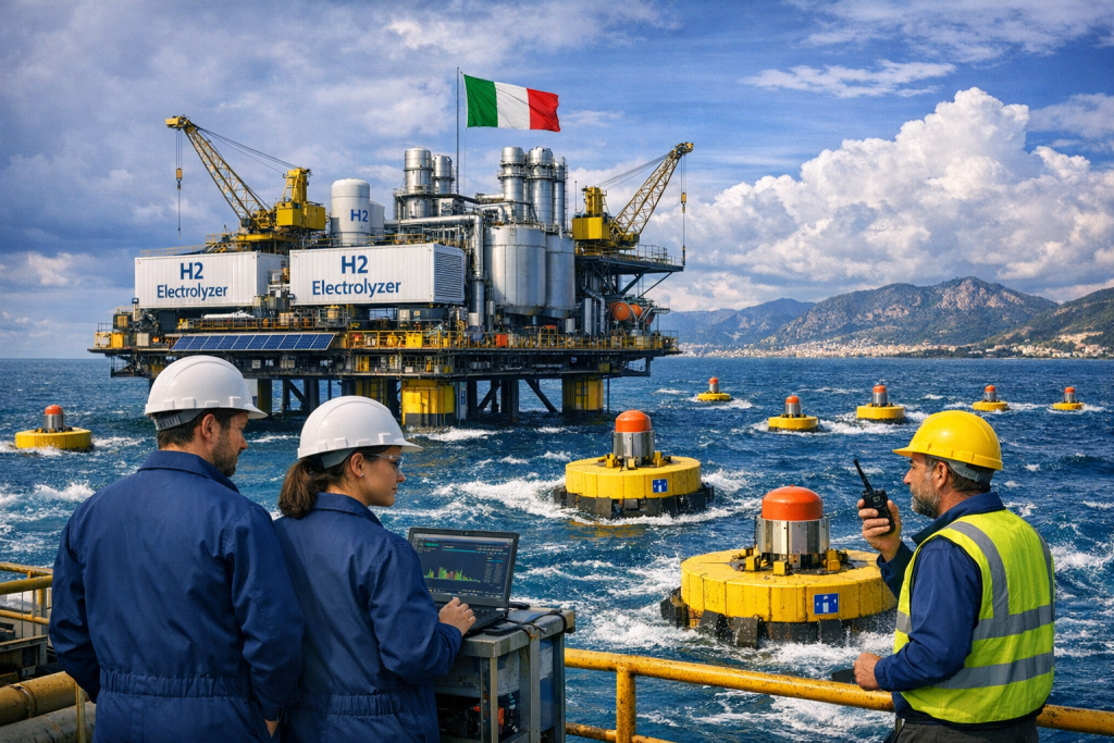 Idrogeno dal mare: l’Italia testa primo elettrolizzatore offshore che produce H2 con onde 🌊⚡